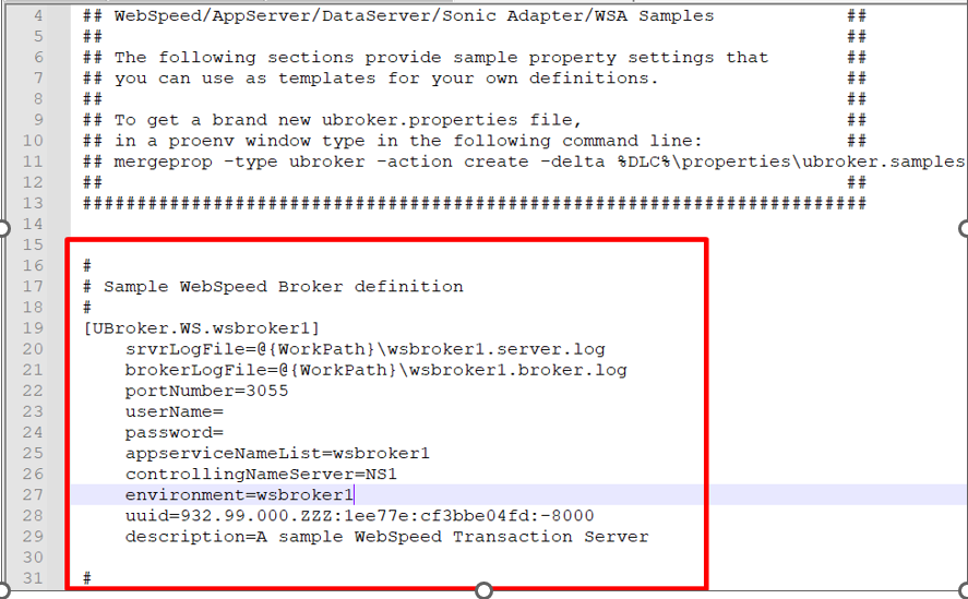 - ubroker.properties file – Please refer below image where we tried to configure the broker with the minimum needed settings . @Workpath will be your working directory , Portnumber – port on which broker process would listen to , broker name – wsbroker1 , description .
