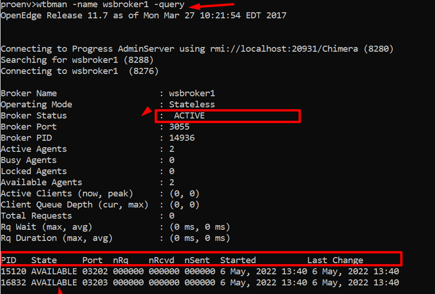 USE WTBMAN again to query the status of Broker –