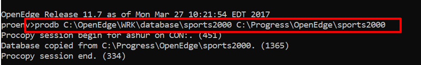 We will simply copy the sports2000 into our location – C:\OpenEdge\WRK\database .