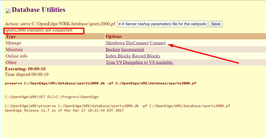 WebSpeed WorkShop would allow us to connect and start the sports2000 from our new location .