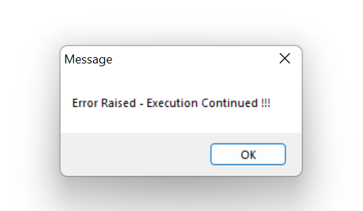 MESSAGE “Error Raised – Execution Continued !!!” VIEW-AS ALERT-BOX .