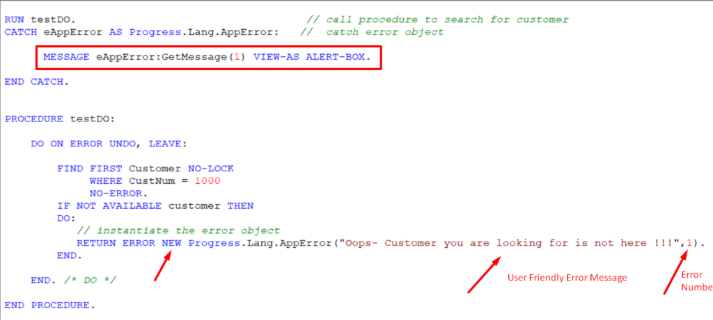 Above factors need us to validate data flow across various points of program execution thus making sure raising Application errors at such points are important . Raising Application errors which are customized can be treated as error object using Progress.Lang.AppError .