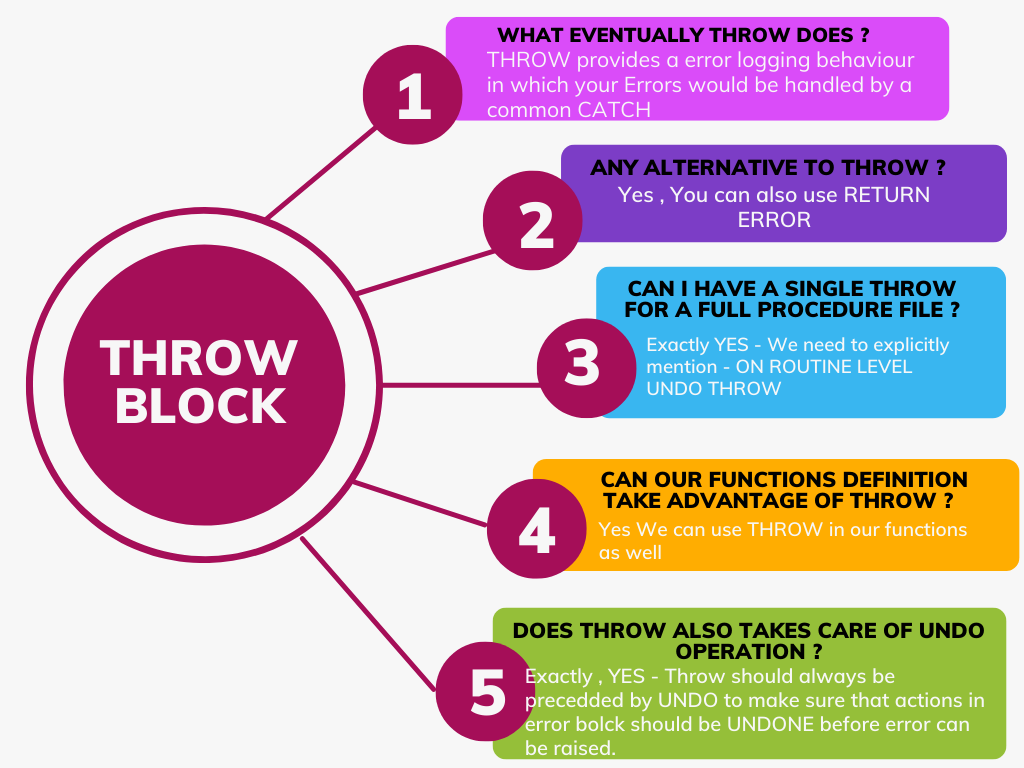 .Throwing raised errors to a certain location requires moving errors to a certain call stack where they all can be handled by common CATCH. How do we do that ? Use of THROW help us achieve the same .